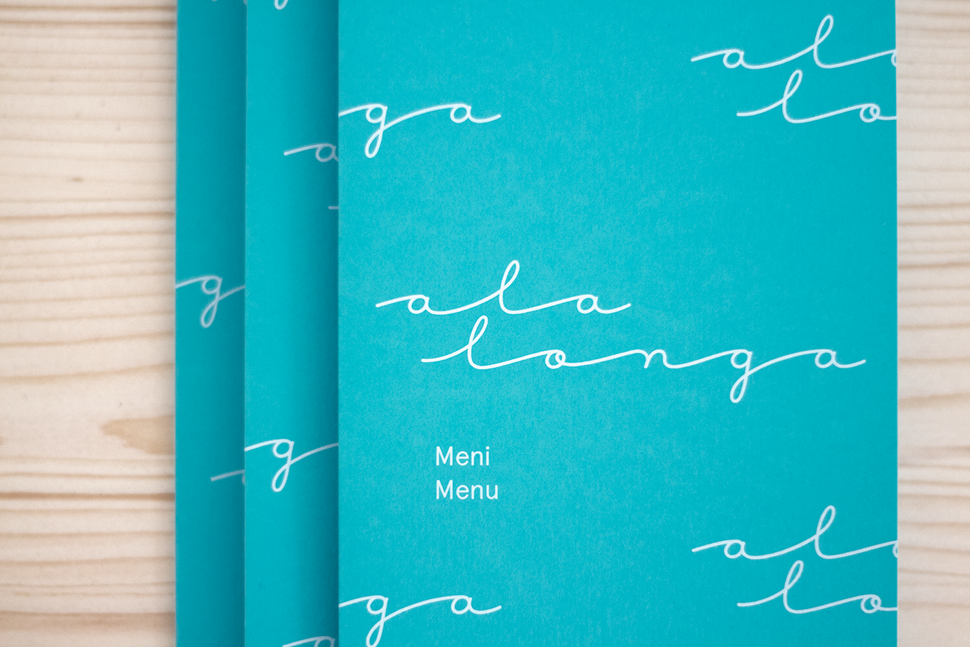 Memorable visual identity is easily established with a simple logotype pattern which brings out the feeling of sea waves with its repetetivneness. Menu covers are printed on a turquoise paper for an optimistic, summer, fresh look.