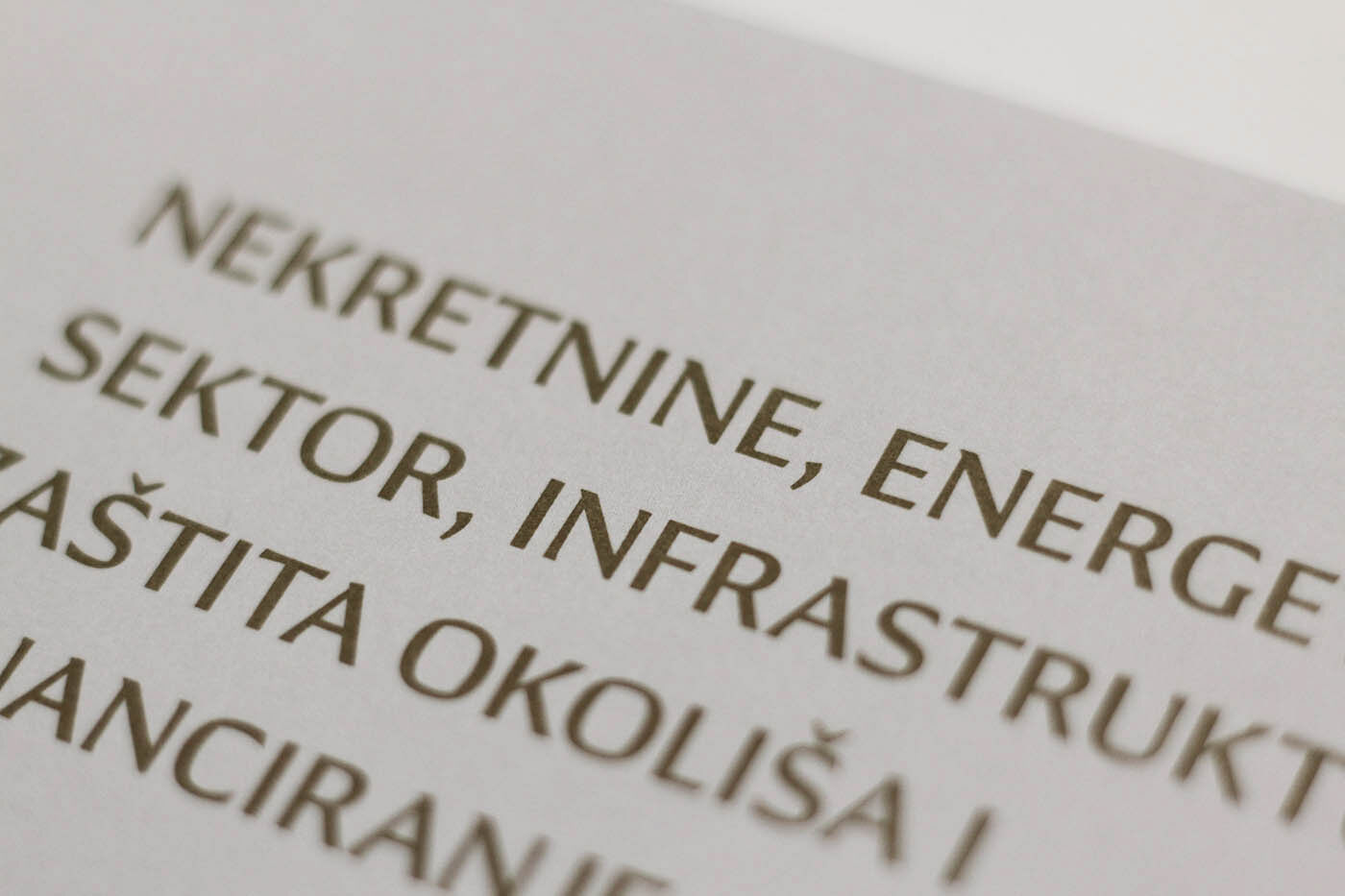 Marketing of law offices is severely restricted in Croatia, so the focus of the understated redesign was on effective typography, paper stock by Fedrigoni and quality print production using gold foil. Their new corporate font (Conglomerate) is a rare combination of serif and sans serif, chosen to show the traditional but modern nature of the firm. Warm gray color system works well with beautiful wood-clad interiors, designed by Stairwell&Loft.